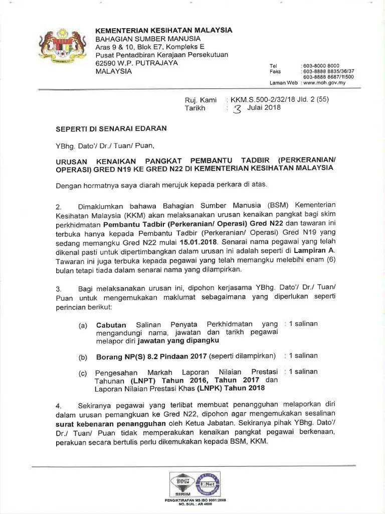 Operasi) gred n19 ke gred n22 di kementerian kesihatan malaysia. Garis panduan pelaksanaan penetapan gaji permulaan. 1.3 kaedah penetapan tarikh kenaikan pangkat.
